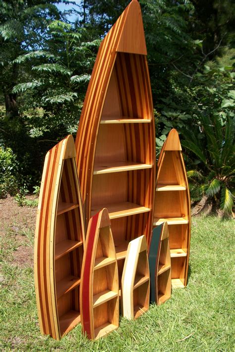 - Canoe shaped shelves can be found in various sizes, from small wall-mounted options to larger freestanding units.